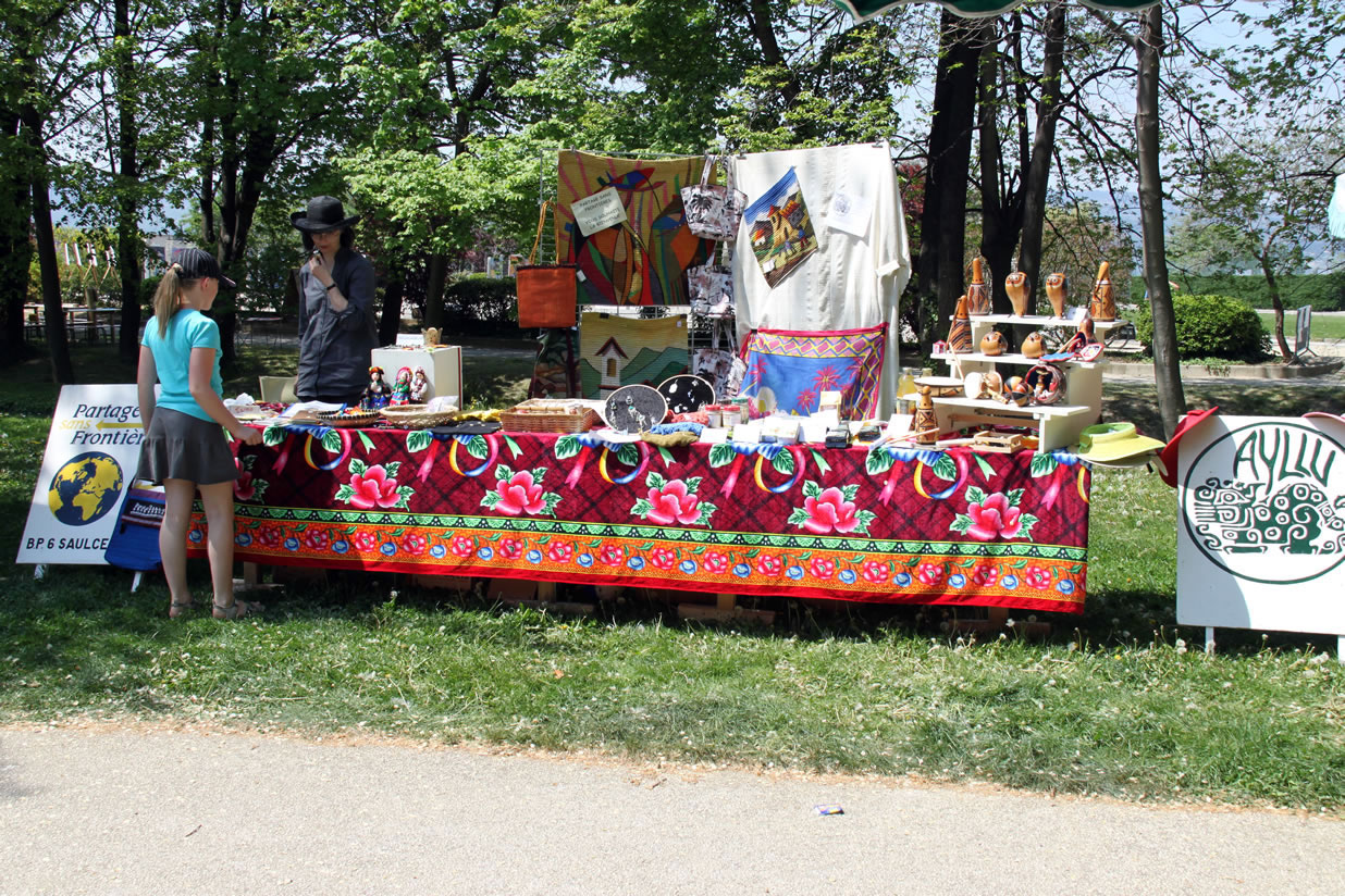 Ayllu et Partage sans Frontières sur leur stand lors de la manifestation mon quartier ma planète de Bourg-lès-Valence le 25 avril 2010