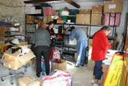 Préparation des ventes de Partage sans Frontières et Ayllu, réception de l'artisanat, étiquettage, mise en stock, en 2008. Les bénévoles de l'association au travail.