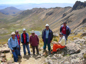 "Seguimos de largo pasando por pequeños caminos que aún no están señalizados, observando en el trayecto plantas aromáticas del lugar y la belleza del paisaje rodeados de montañas con rocas de diferentes colores que no nos deja hasta llegar al mirador de Apacheta, donde la naturaleza nos recibe con un pequeño remolino andino y se respiraba el aire más escaso pero puro. Luego de disfrutar nuestro agua mineral y frutas, empezamos a descender por una pendiente muy estrecho, a medida que avanzábamos ya podíamos observar la hermosa laguna Huara Warani en el seno del volcán apagado, de color celeste (luego se observa de diferentes colores) y una pequeña laguna de color naranja, casi al llegar al borde nos detenemos para observar -en silencio casi religioso- la belleza del lago y las aves que chillaban por nuestra presencia, luego el Sr. Chalco con el guía local nos indican que había llegado la hora de probar el agua de manantial mas pura en la salida principal del cráter…" Ver la crónica completa del viaje >>>>